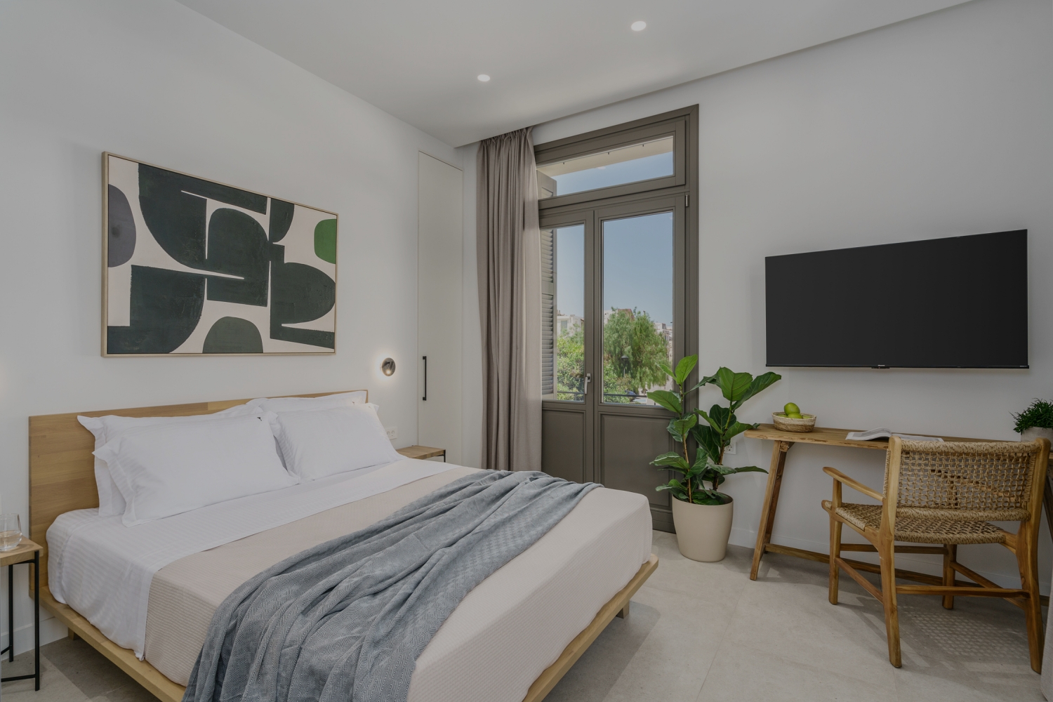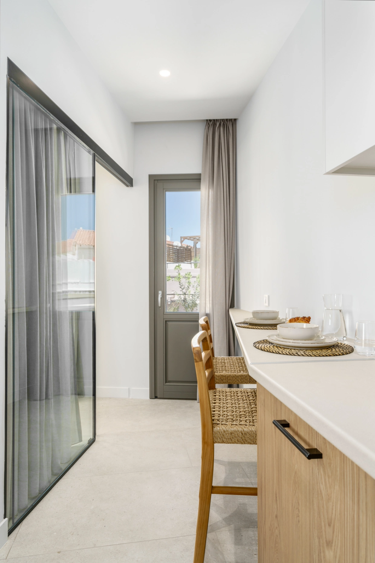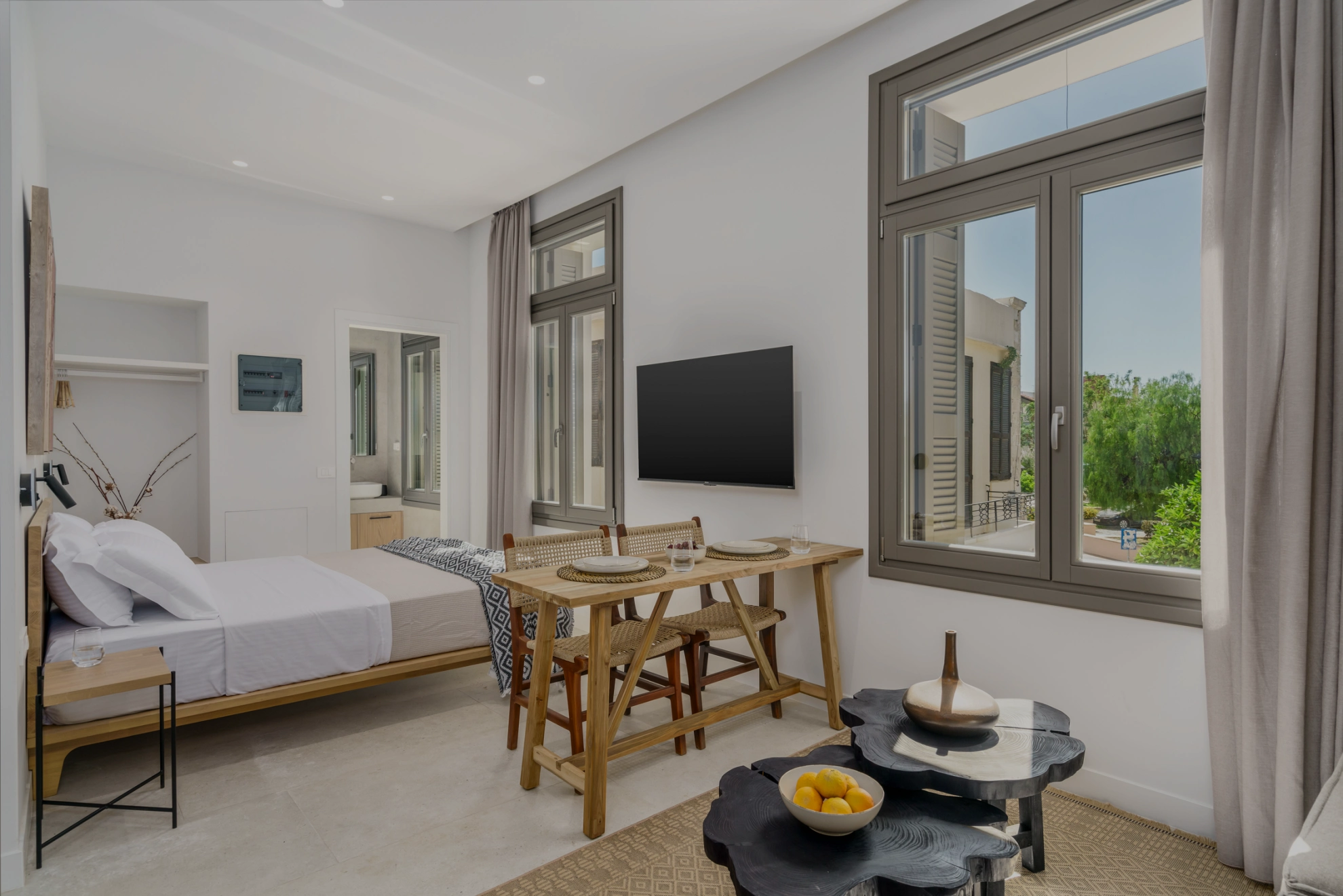 The Old Distillery Premium Suites embodies the rich heritage of Rethymno through a harmonious blend of tradition and contemporary design. Set in a carefully restored historic building, it preserves the authentic stone walls, wooden elements, and traditional architectural details, maintaining a deep connection to the city’s past. At the same time, clean lines, open spaces, and neutral color palette create an atmosphere of refined simplicity. Large windows allow natural light to flood the interiors, enhancing the contrast between historic charm and modern minimalism. The result is a timeless yet contemporary retreat, combining Rethymno’s authentic soul with a warm, sophisticated ambiance.