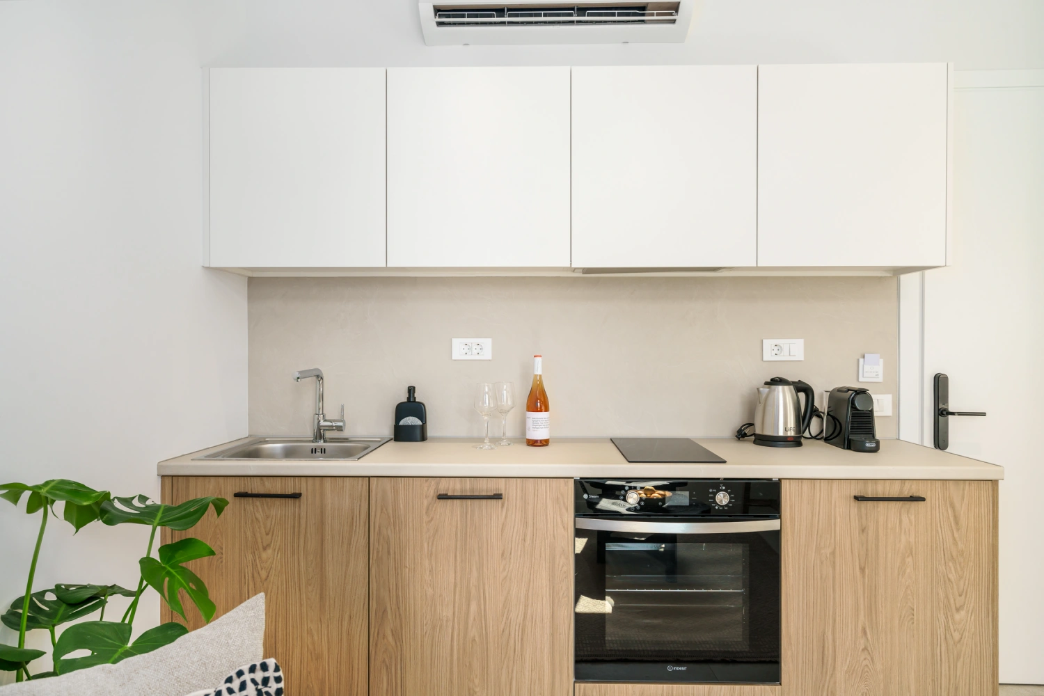 Each space is designed for ultimate relaxation and functionality, offering carefully selected amenities. Luxurious bedding, soundproofing, and air conditioning ensure restful nights, while spacious living areas create an inviting atmosphere. The fully equipped kitchens, featuring a stovetop, oven, refrigerator, and coffee machine, allow for effortless in-suite dining. The stylish bathrooms include rainfall showers, soft towels, and premium toiletries. High-speed Wi-Fi, smart TVs, electronic locks, and secure access add modern convenience. Whether you’re enjoying your coffee on a private balcony or unwinding after a day in the city, every detail is designed to make your stay unforgettable.