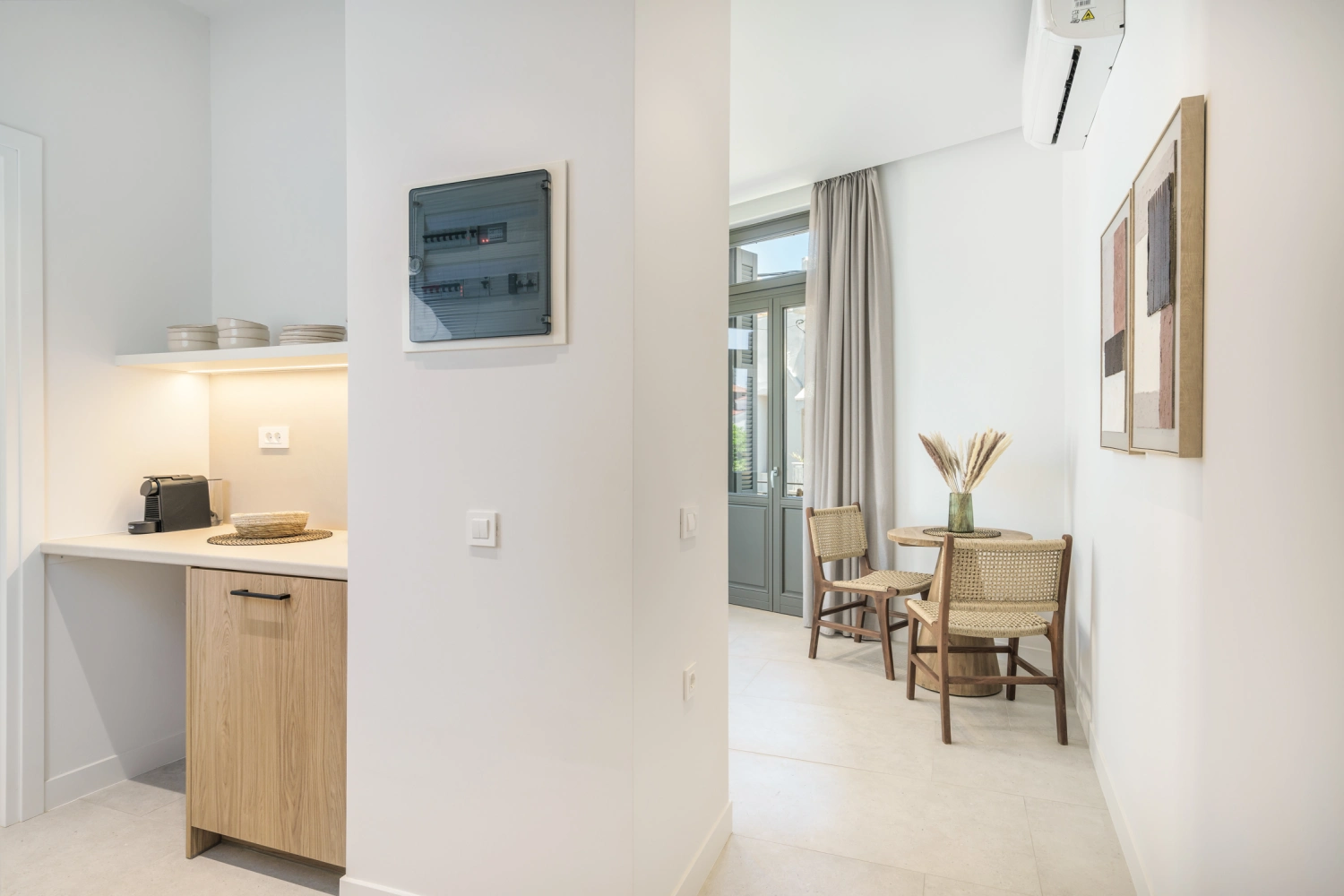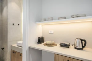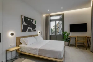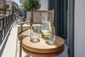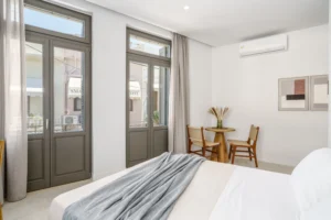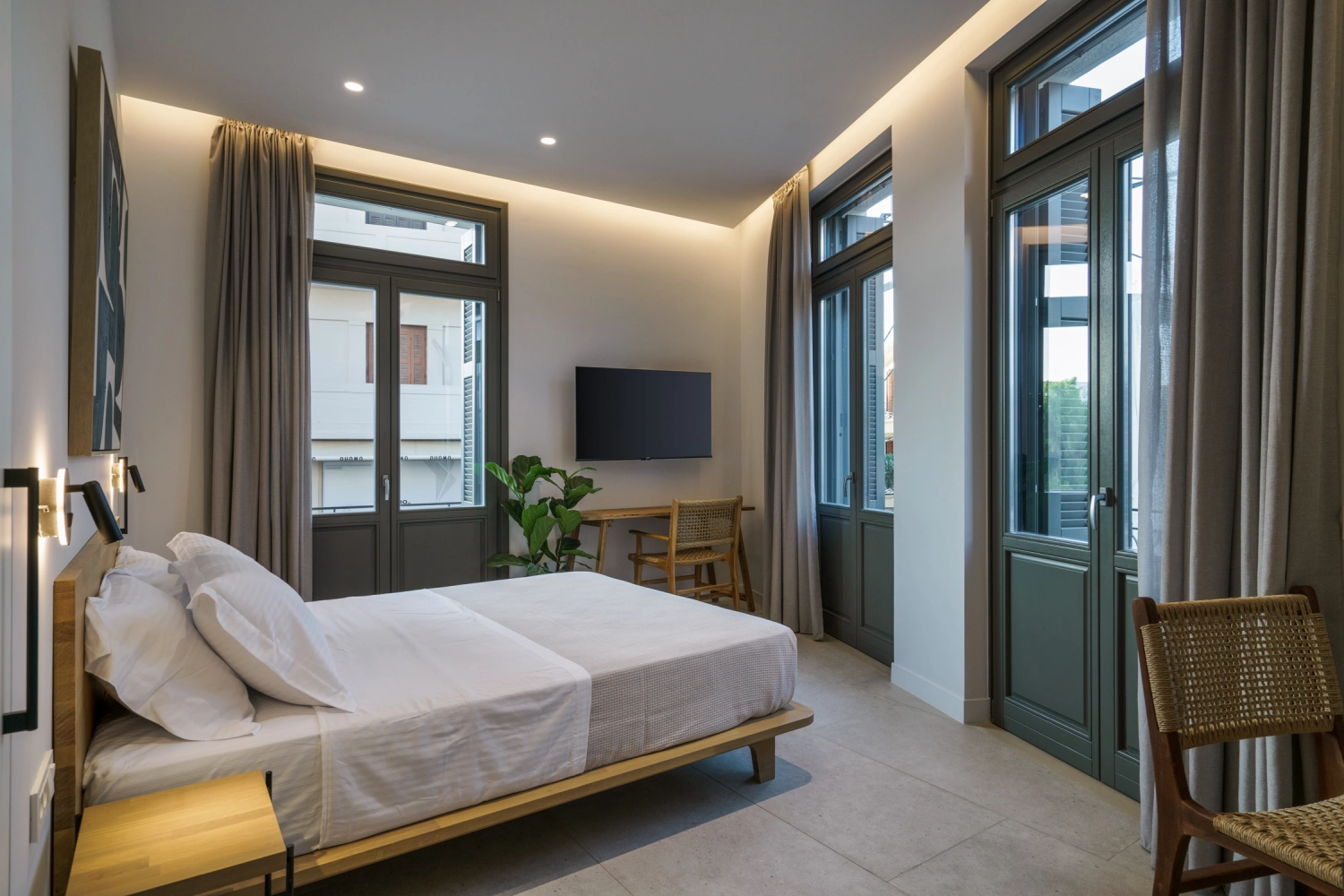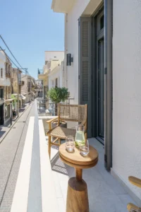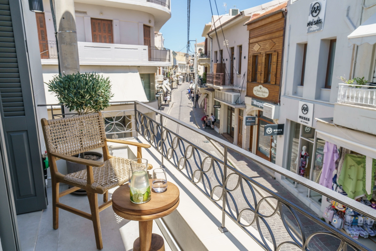 The Deluxe Suite can accommodate up to 2 people, offering a spacious and comfortable queen-size bed for a restful stay. Located on the first floor of the building, it features two private balconies that offer unique views of the lively atmosphere of Rethymno’s Old Town.